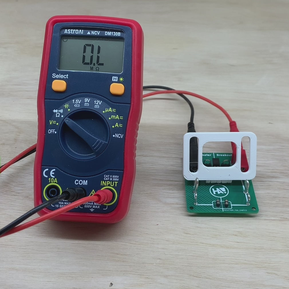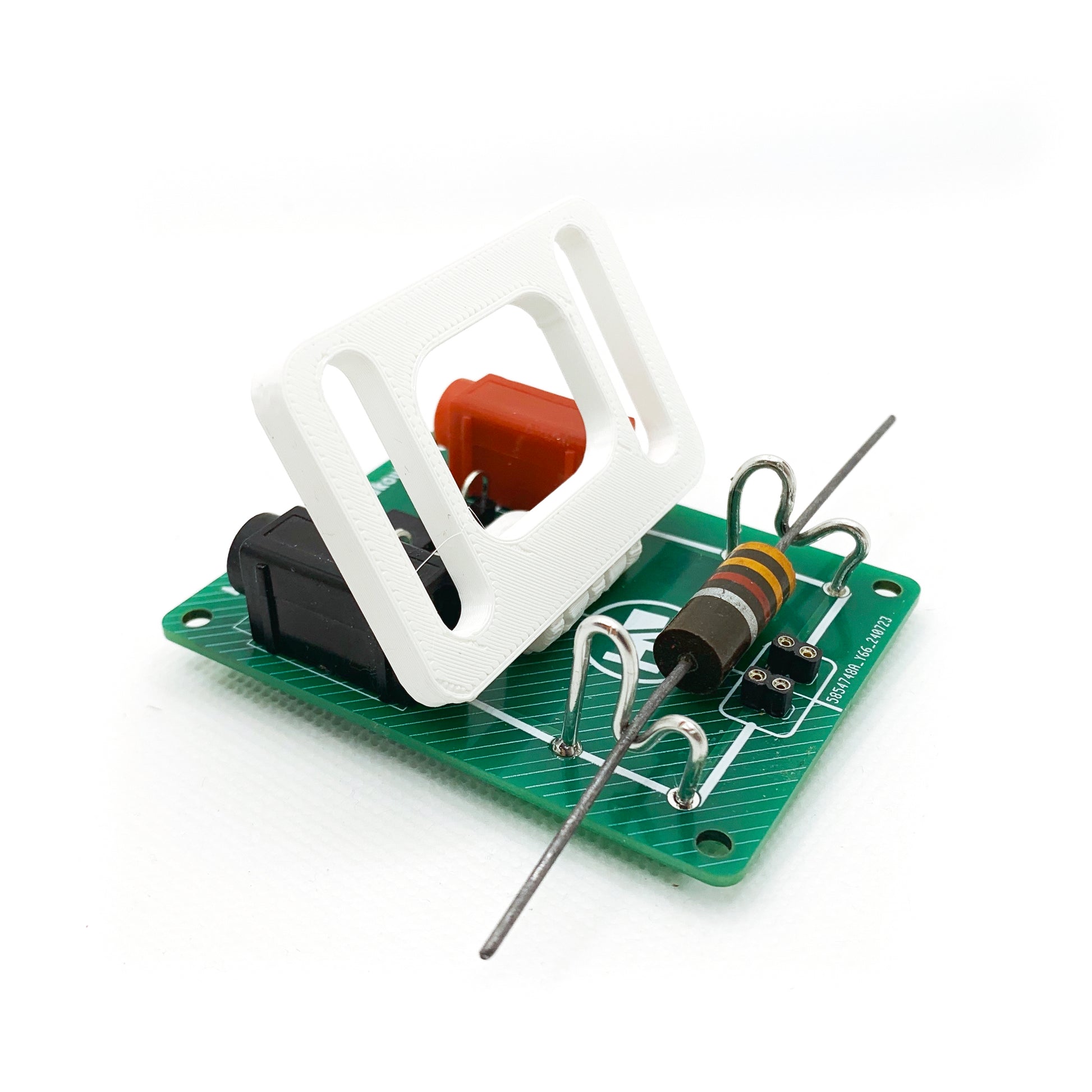 So I designed this little jig to 'break-out' the test leads of just about any multimeter into an ergonomic, speed testing configuration. Just drop any axial part into the component seat and flop the pressure hinge down to shore up the contact.