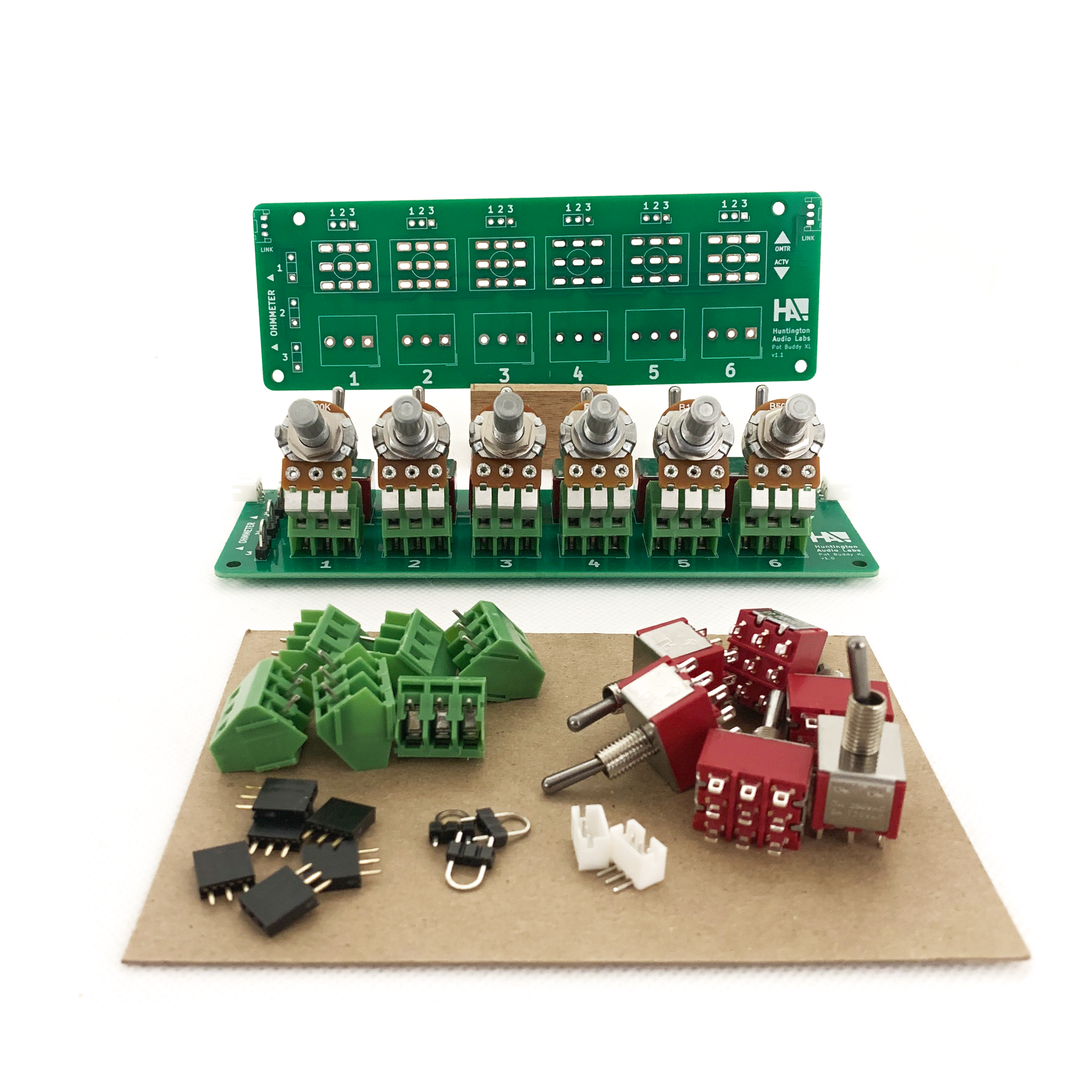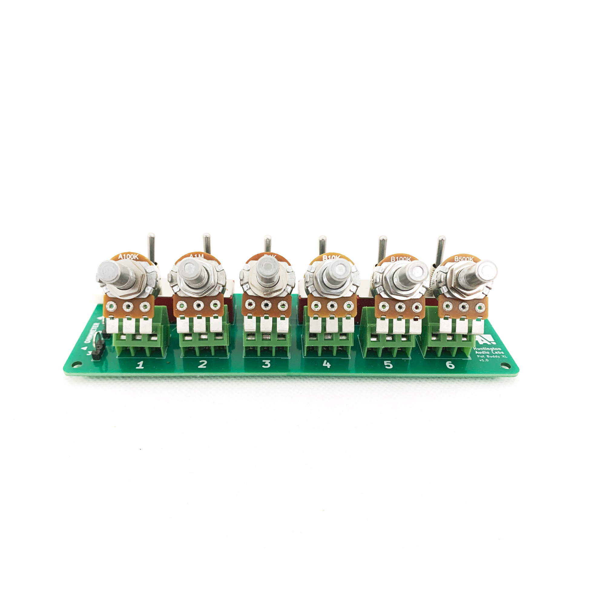 The Pot Buddy XL makes room for up to six typical 16mm potentiometers.