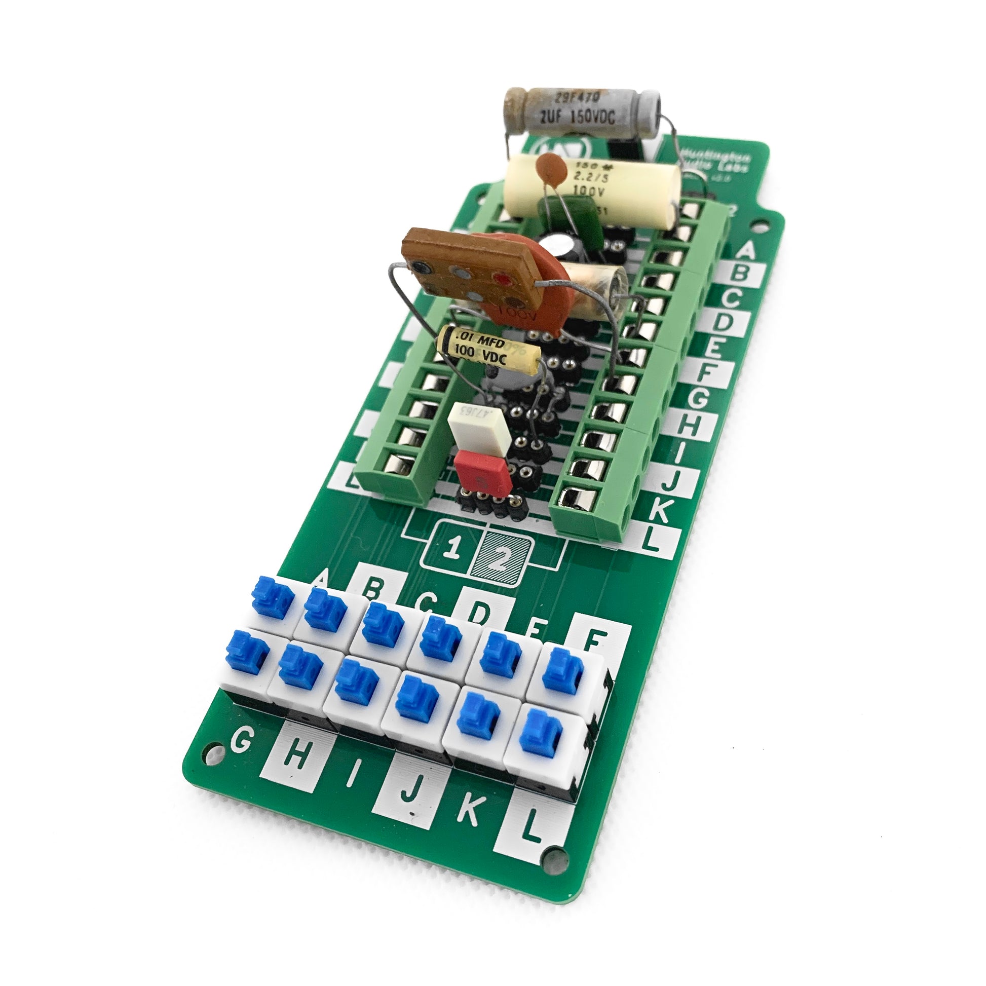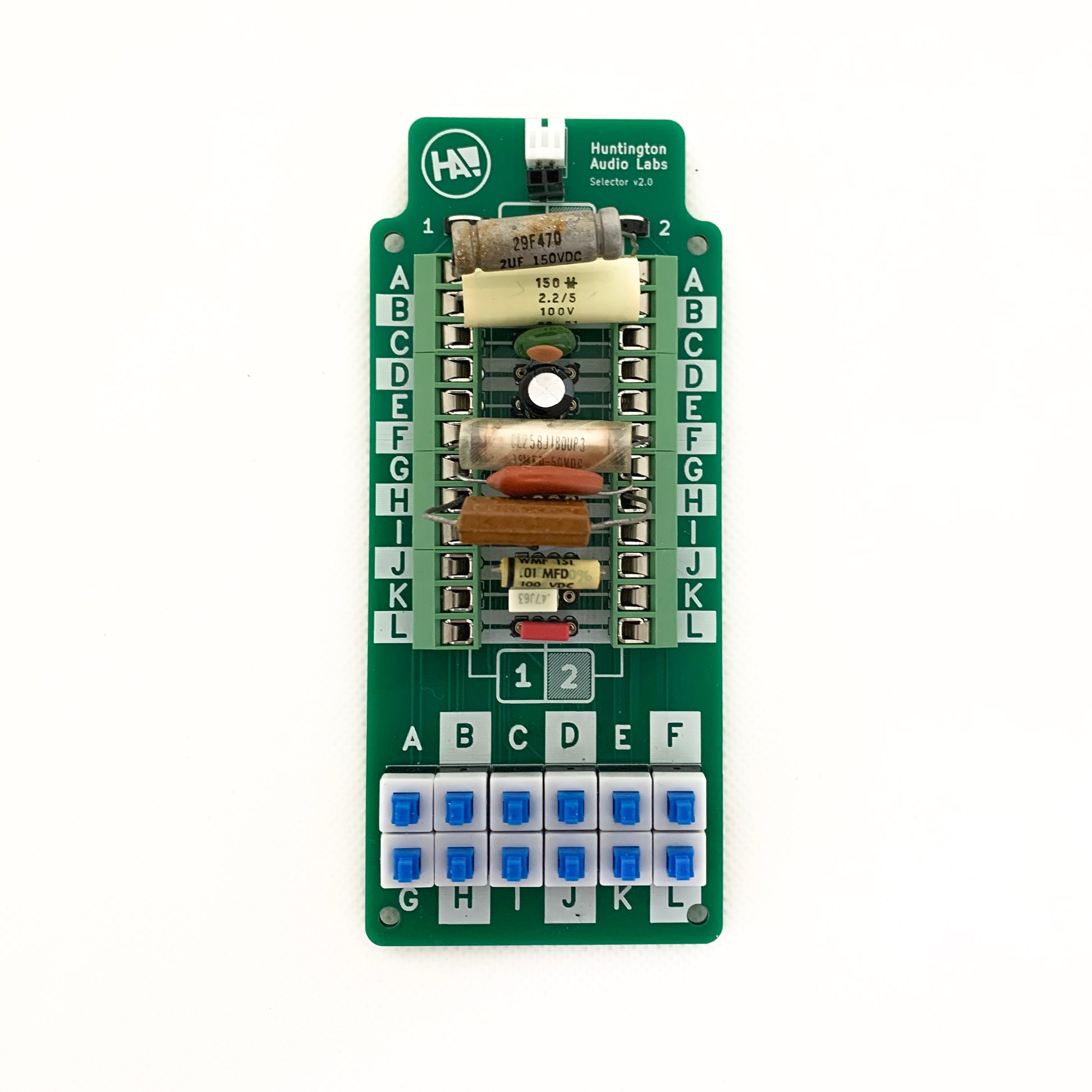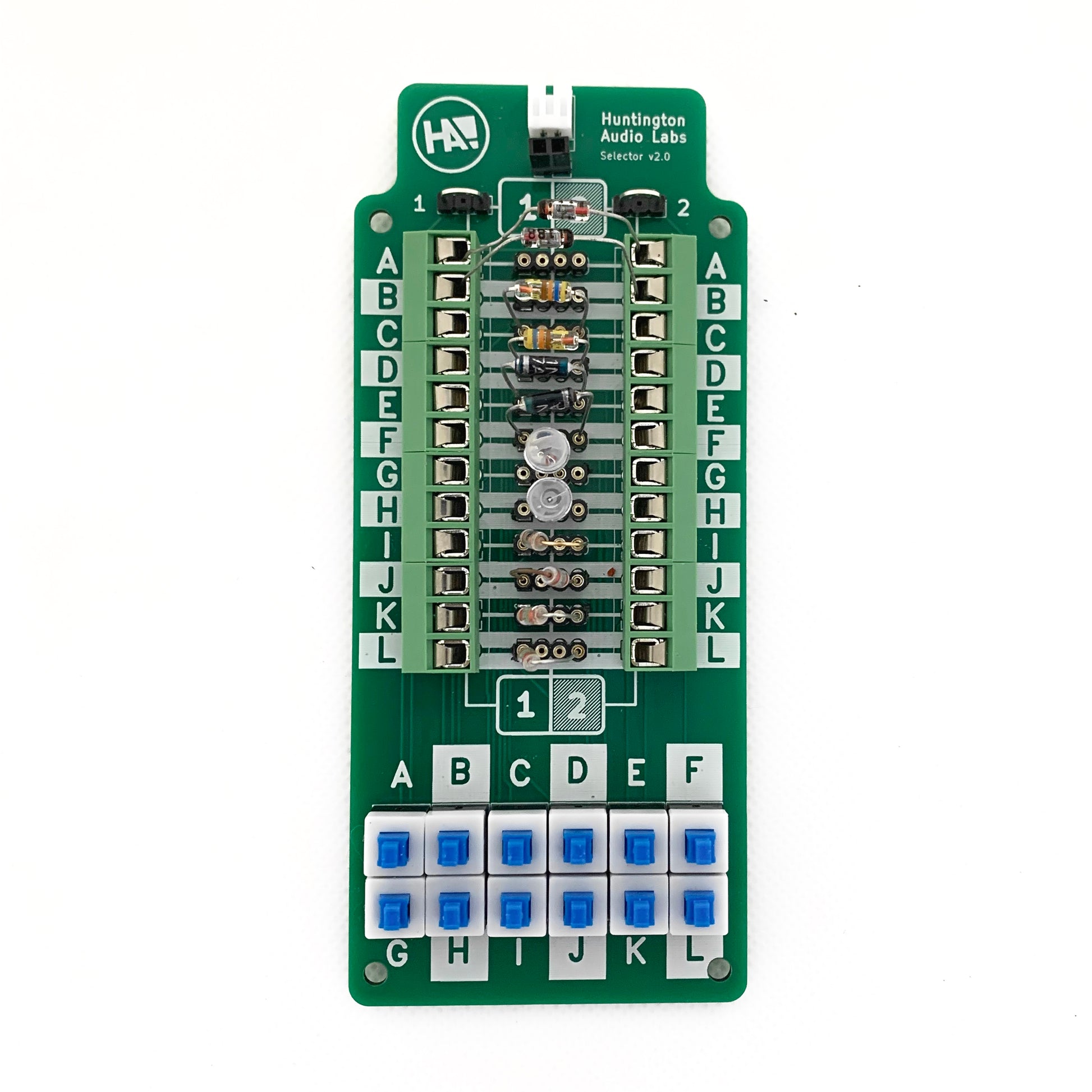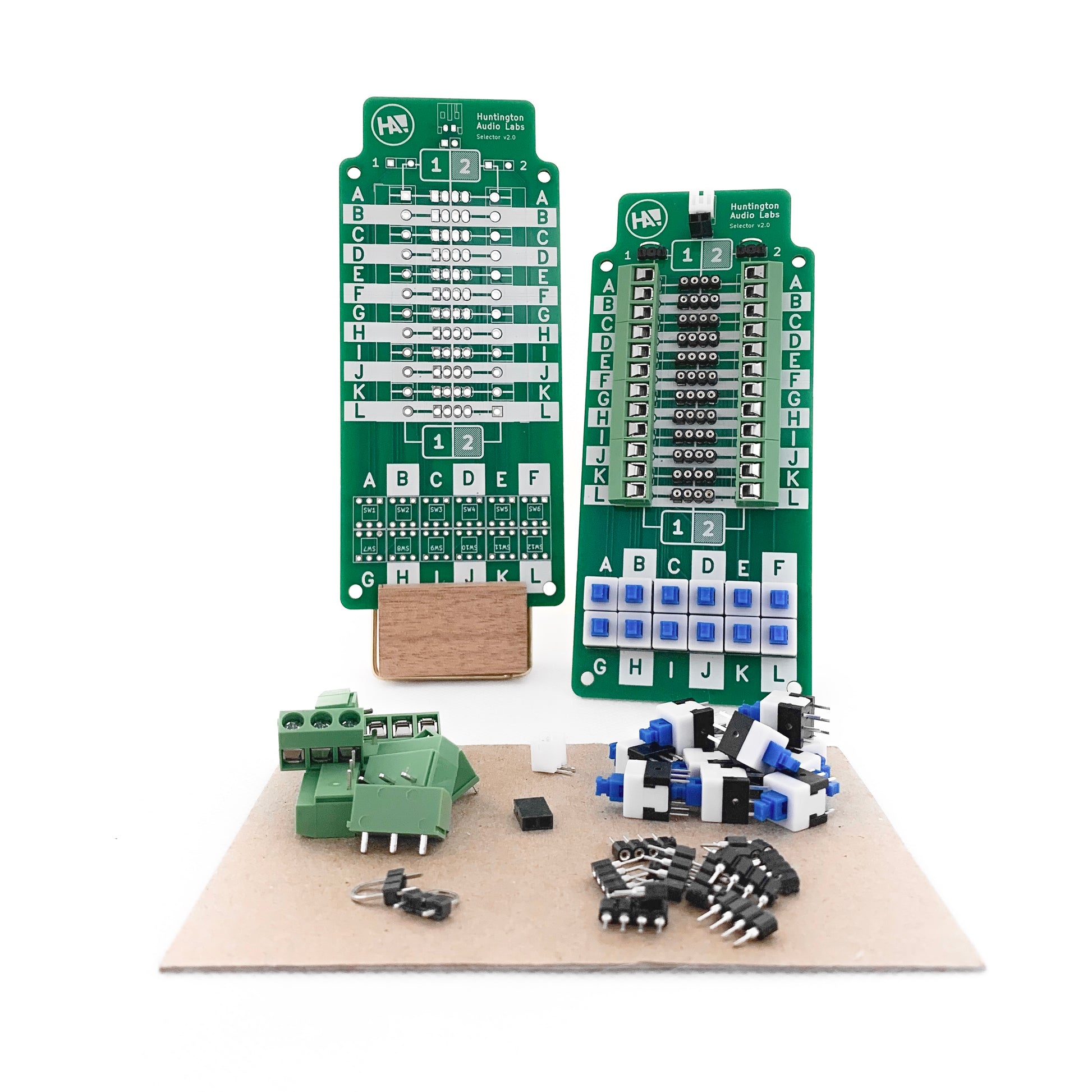 The Selector was designed to allow you to toggle any of 12 different components in or out of a circuit in a parallel configuration with the press of a dedicated latching button. Simple concept, loads of utility.